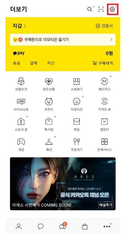 1) 카카오톡 하단에 [더보기 ...]을 클릭합니다.